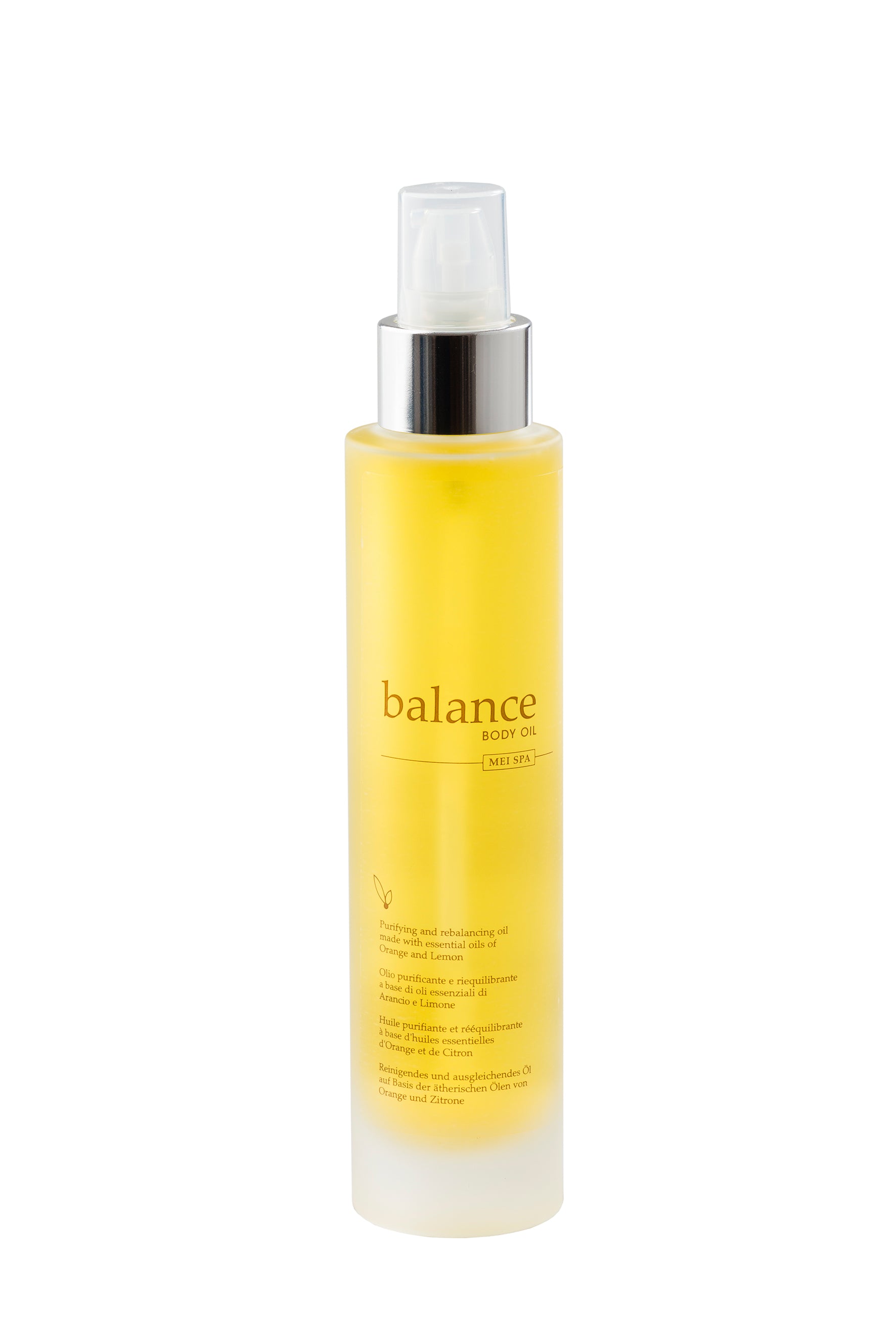 Elastizität spendendes und hautschützendes Öl, ideal für Schönheitsmassagen auf Basis von ätherischen Ölen aus Orange, Zitrone und Bergamotte.